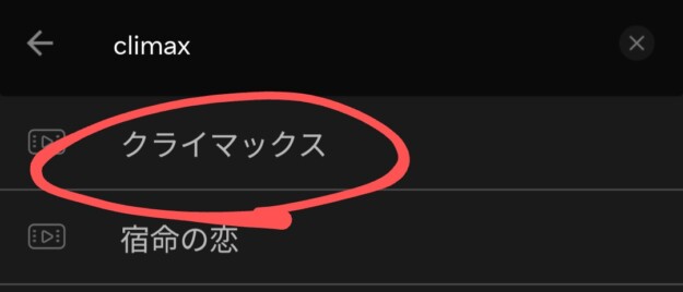 赤枠部分に英題「Climax」を入力すると出てきます。