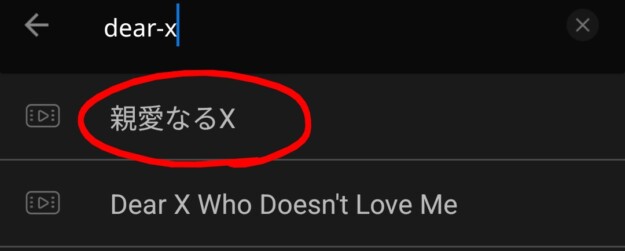 赤枠部分に英題「dear-x」を入力すると出てきます(必ず-ハイフンを入れてください)