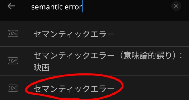 赤枠部分に英題「semntic error」を入力すると出てきます。