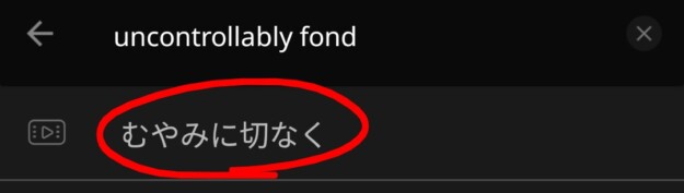 赤枠部分に英題「uncontrollably fond」を入力すると出てきます。