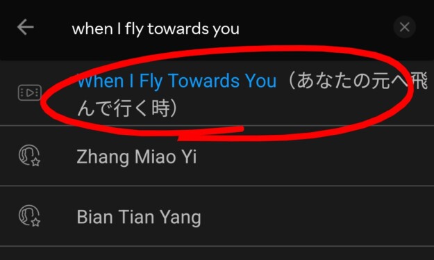 赤枠部分に英題「When I Fly Towards You」を入力すると出てきます。