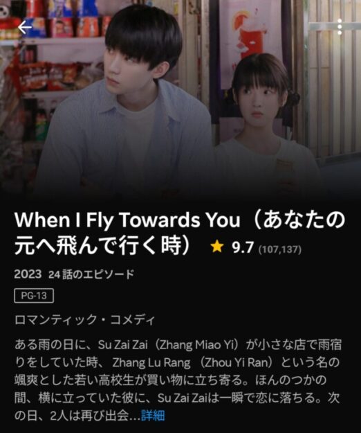 2026年4月現在「当我飞奔向你 (あなたの元へ飛んで行く時)」は日本での配信は未定。今後日本で配信される予定もありません。